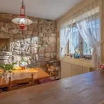 Gli interni, che godono di una vista sul giardino, comprendono anche uno scrittoio. Oltre al camino in pietra, gli ospiti hanno a disposizione una varietà di contenuti multimediali, tra cui un televisore. Il bagno è dotato di una vasca da bagno e una doccia, asciugacapelli e asciugamani.